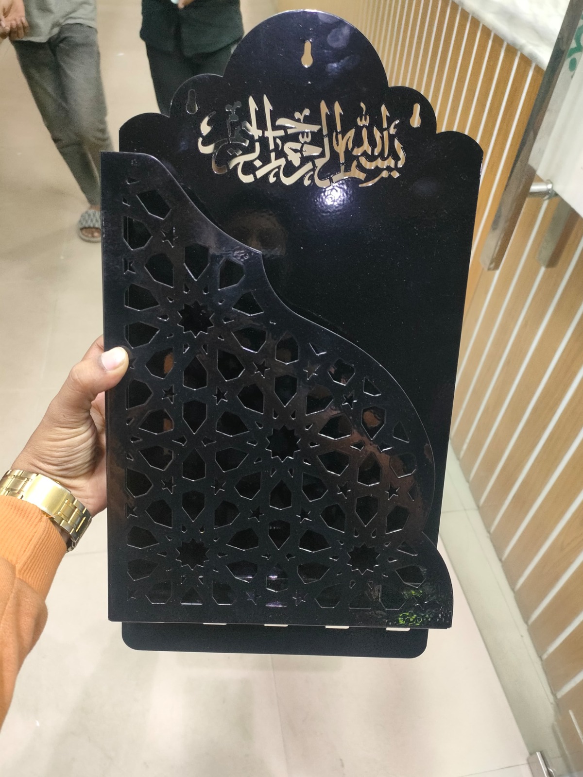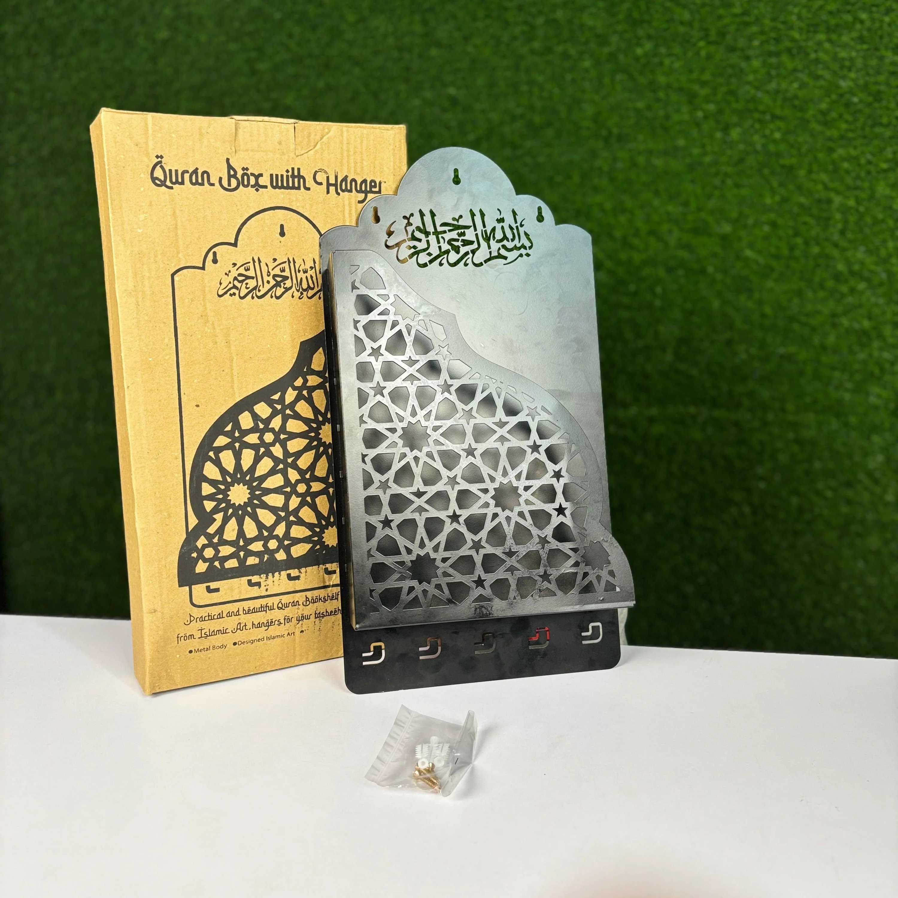 Description:-This is a Holy Quran Box with Tasbih Hanger which is made from high quality material and makes it durable. It provides the Holy Quran protection and makes it easy access to your holy book. Perfect for home or mosque settings, keep your Quran safe and readily available with this box and hanger set.